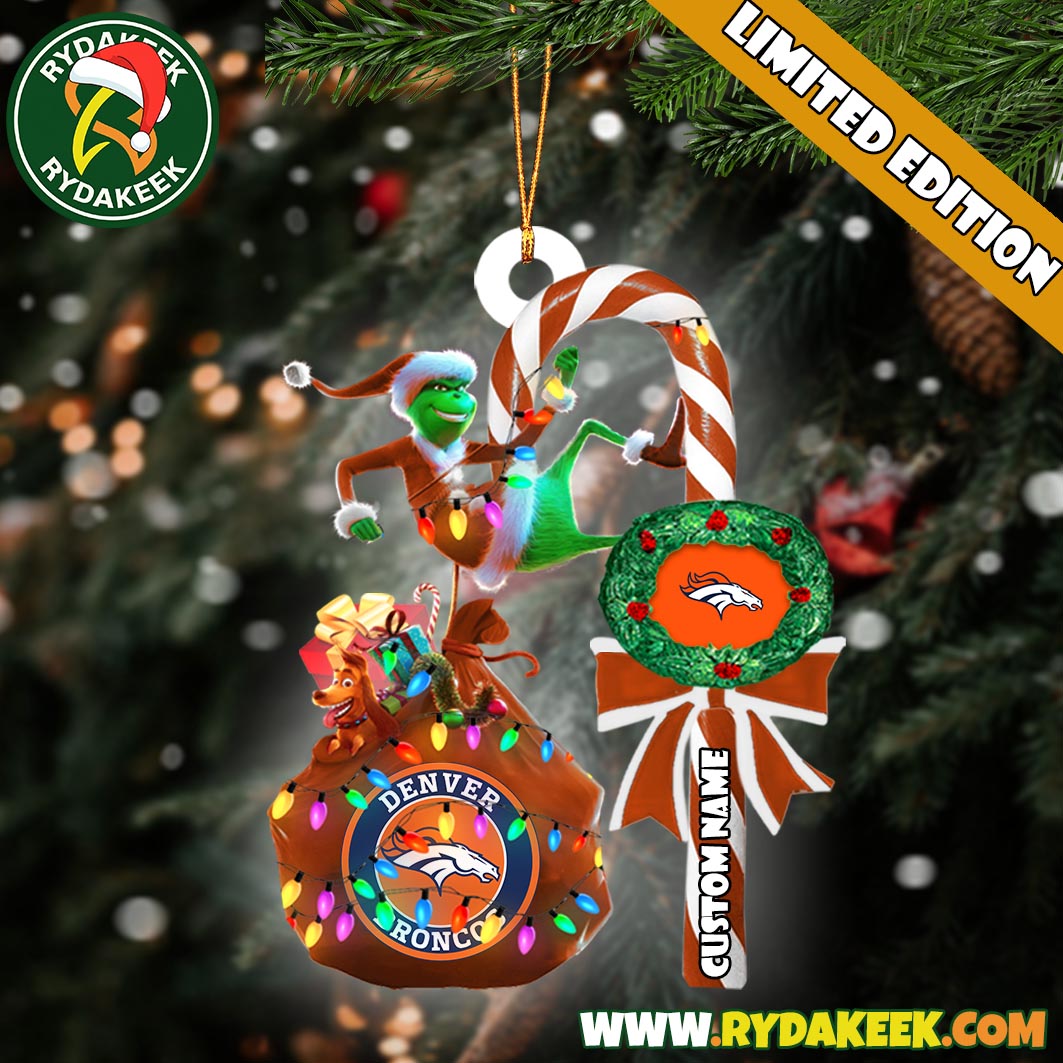 About Denver Broncos NFL Custom Grinch Candy Cane Name Ornament 2025 Xmas Tree Gift By Brand Rydakeek