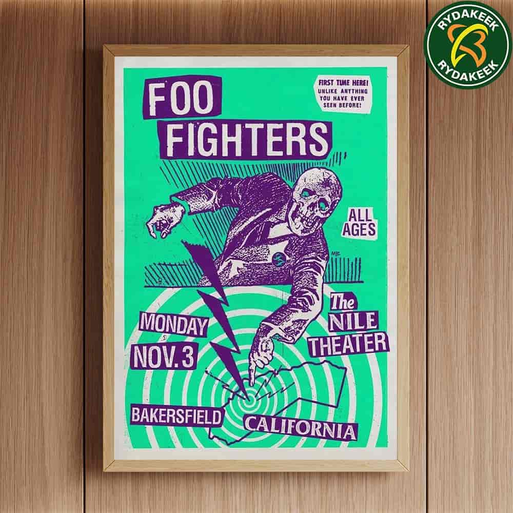 Foo Fighters Bakersfield California At The Nille Theater On November 3 2025 Home Decor Poster Canvas – Rydakeek Canvas Posters: Bring Life to Your Walls