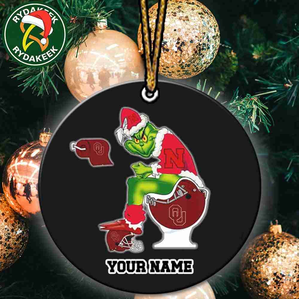 Grinch Christmas X Nebraska Cornhuskers Sitting On Toilet Oklahoma Sooners Christmas Tree Decorations Ornament Funny College Football NCAA