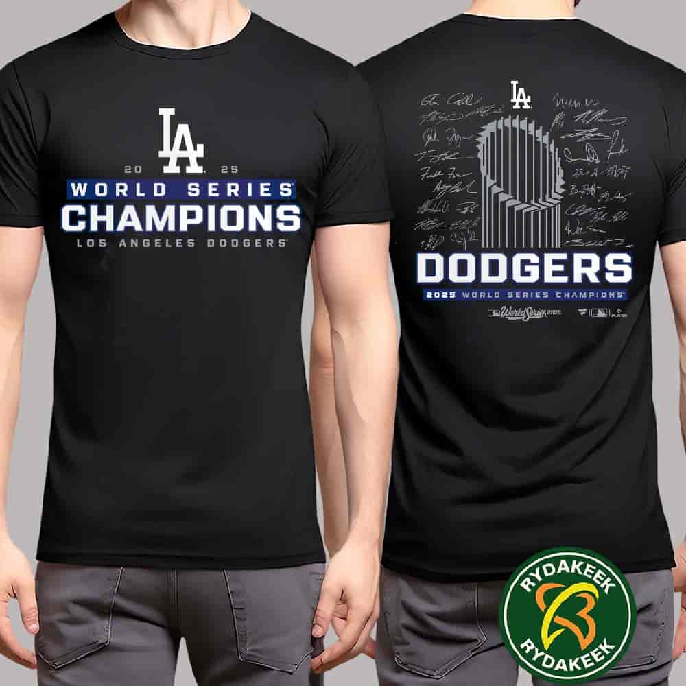 MLB Los Angeles Dodgers Fanatics Black 2025 World Series Champions Signature Roster T-Shirt