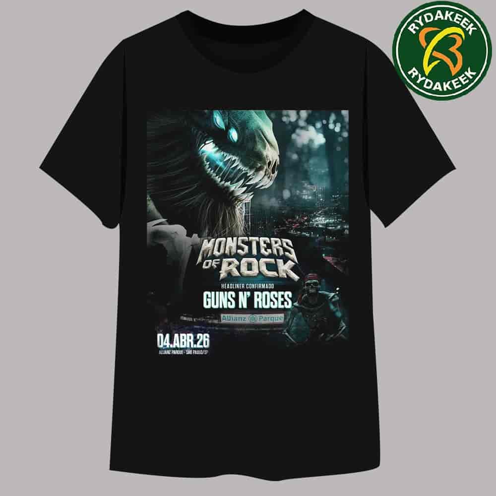 The jungle is officially landing in São Paulo! The monumental announcement that Guns N’ Roses will headline the legendary Monsters of Rock 2026 festival on April 4th at Allianz Parque has sent shockwaves of excitement through the global rock community. Few bands command the stage with the raw power and enduring appeal of Axl Rose, Slash, and Duff McKagan, whose epic riffs, from “Sweet Child O’ Mine” to “Welcome to the Jungle,” defined the sound of rock and roll for a generation. This performance is set to be one of the most significant live events of the 2026 touring season, drawing dedicated fans from across South America and the world for an incredible night of shared rock nostalgia and explosive live music energy. This commemorative Guns N’ Roses Monsters of Rock 2026 Merchandise T-Shirt is more than just concert apparel; it’s a wearable ticket stub to a historic moment. It allows fans to celebrate the band’s enduring legacy and the thrill of seeing these hard rock legends conquer the stage in Brazil. It’s an authentic piece of music history, essential for any collector of genuine band merch or anyone seeking to channel the untamed spirit of GNR and the ultimate festival atmosphere.